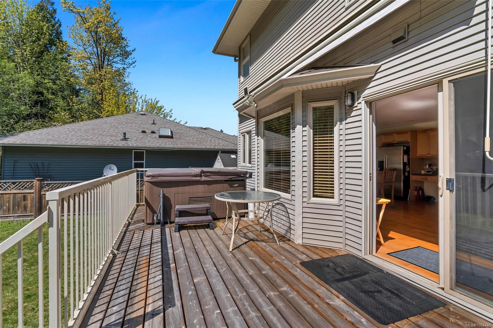 Charming 3 bed, 3 bath family home in the heart of Ladysmith, BC! Ideally located just minutes from schools, recreation, and all amenities. The main floor features a bright kitchen, dining area, and a spacious living room with walkout access to a private deck and hot tub—perfect for relaxing or entertaining. Upstairs offers a primary bedroom with walk in closet and ensuite plus two generously sized additional bedrooms. Recent upgrades include a new heat pump and roof. A comfortable, move-in-ready home in a fantastic family-friendly location!